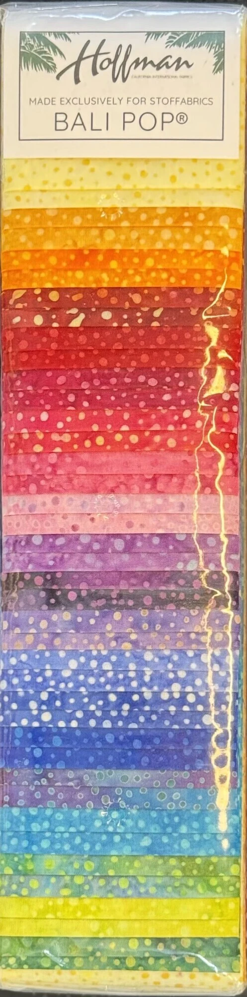 Hoffamnn bali pop - 40 strimler i batik stoffer der måler ca 2,5 x 44 inch. ( på dansk ca 6,25 x 110 cm) - Der er 2 af hver farve og 20 forskellige farver.