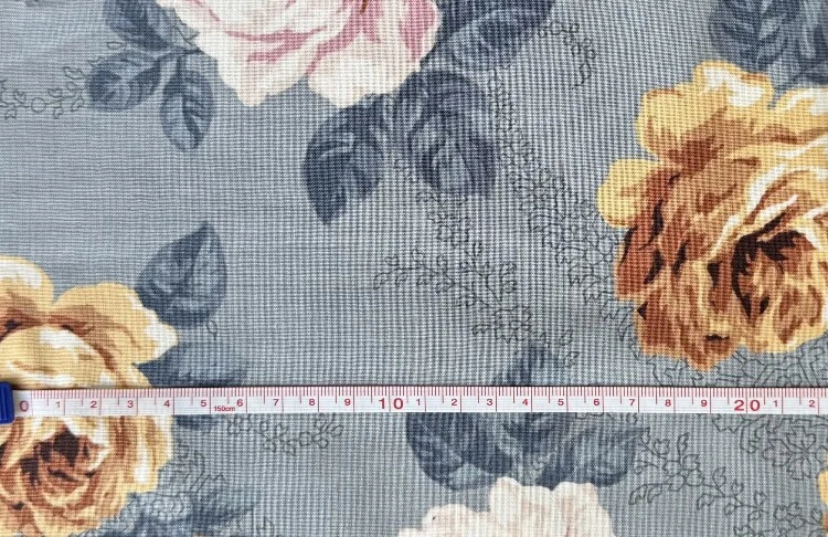 Støvet blå bund med store roser.