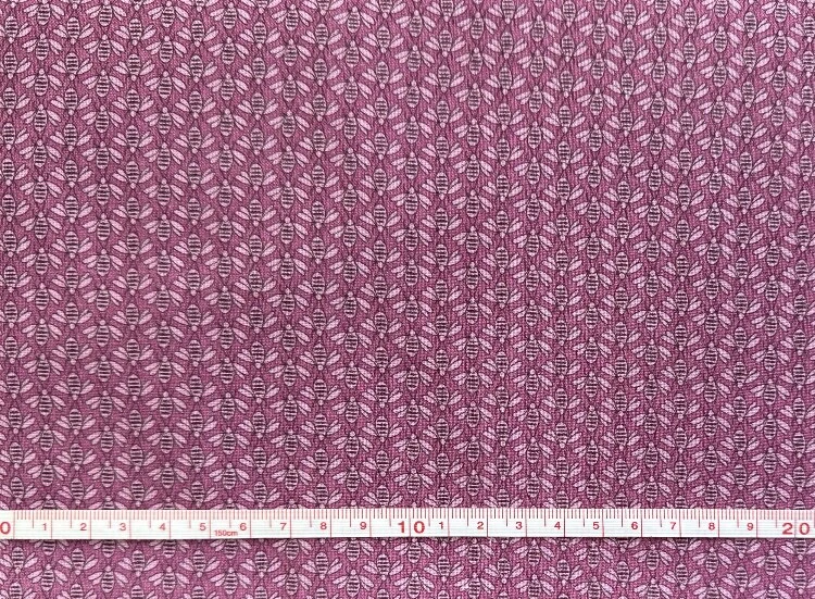 Symmetrisk mønster af små bier på rødlilla bund.