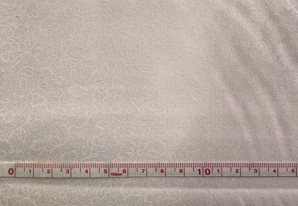 Meget lys creme bund med hvidt print. 100 % Bomuld.