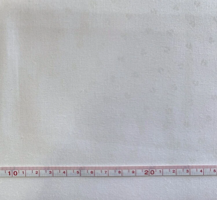 Hvid bund med hvidt tryk. Det er en ”blød” hvid - dvs ikke rigtig hvid eller creme. Mere æggskal.
