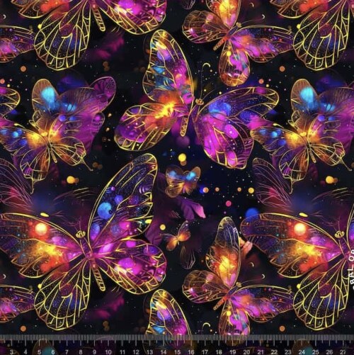 Jersey stof - Print med Shiny Guld Sommerfugle