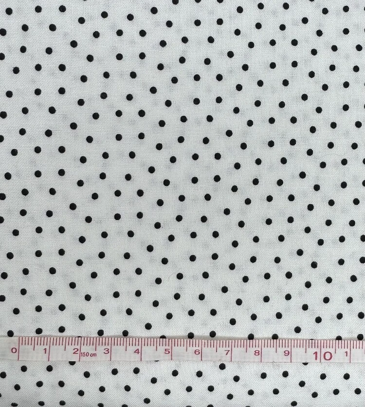 Hvid bund med asymmetriske sorte prikker.