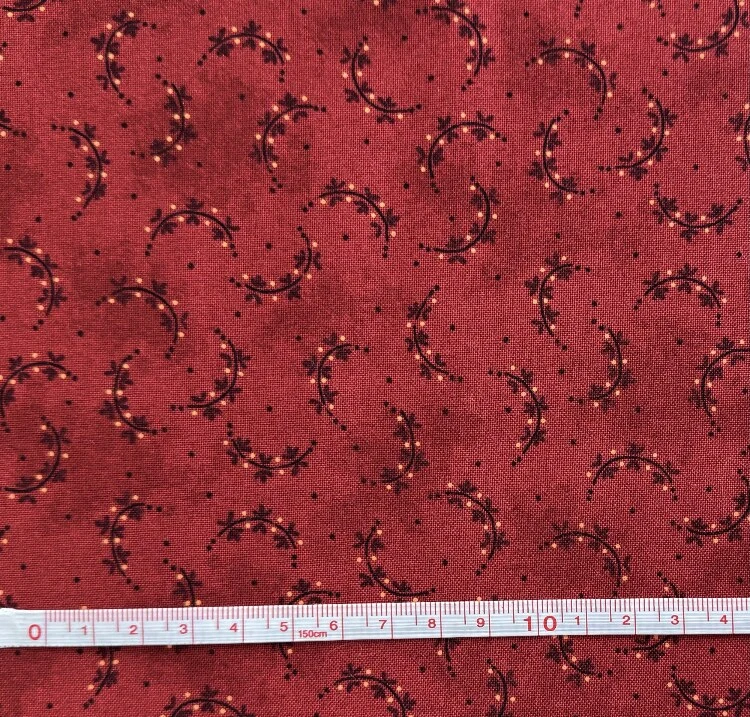 Rød bund (lidt over til den rødbrune side ) med småt mønster i sort og lyst.