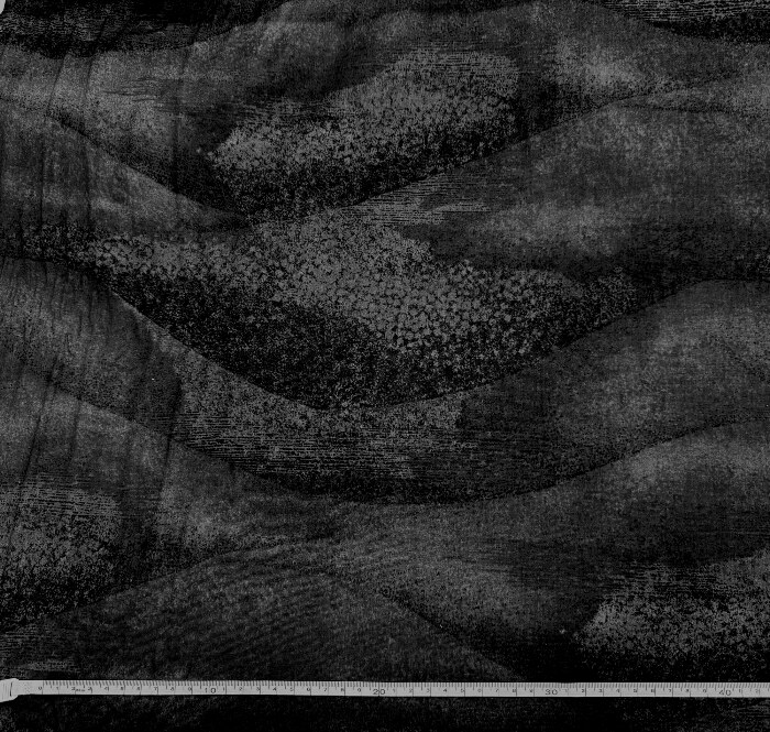 Grå / sort stof der varierer meget farvemæssigt over hele stoffet.